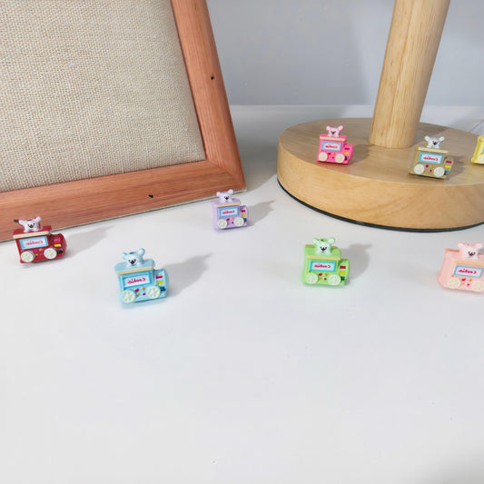 5$ 7pcs Colorful 3D locomotive, puppy driver, cartoon alloy jewelry, mobile phone chain, bag hanging DIY accessories